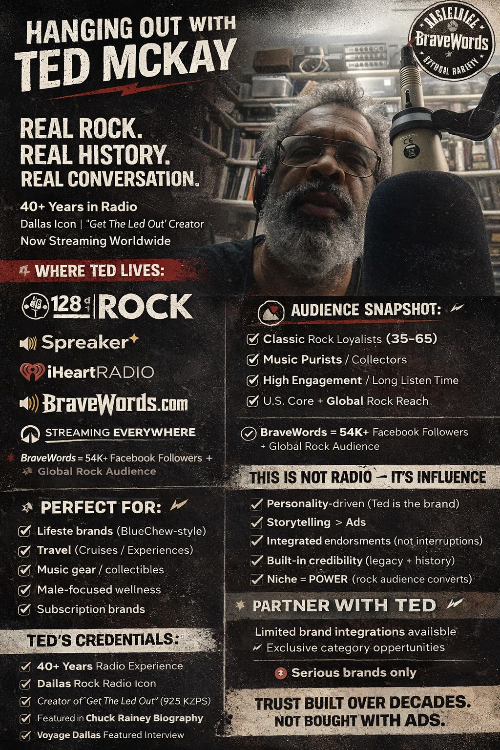 Ted's platform is aligned with BraveWords, a globally recognized rock publication, extending campaigns beyond audio into editorial and social amplification.